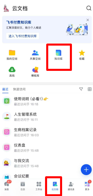 1、需要在手机下载【飞书】app软件,再在飞书上新建一个知识库。