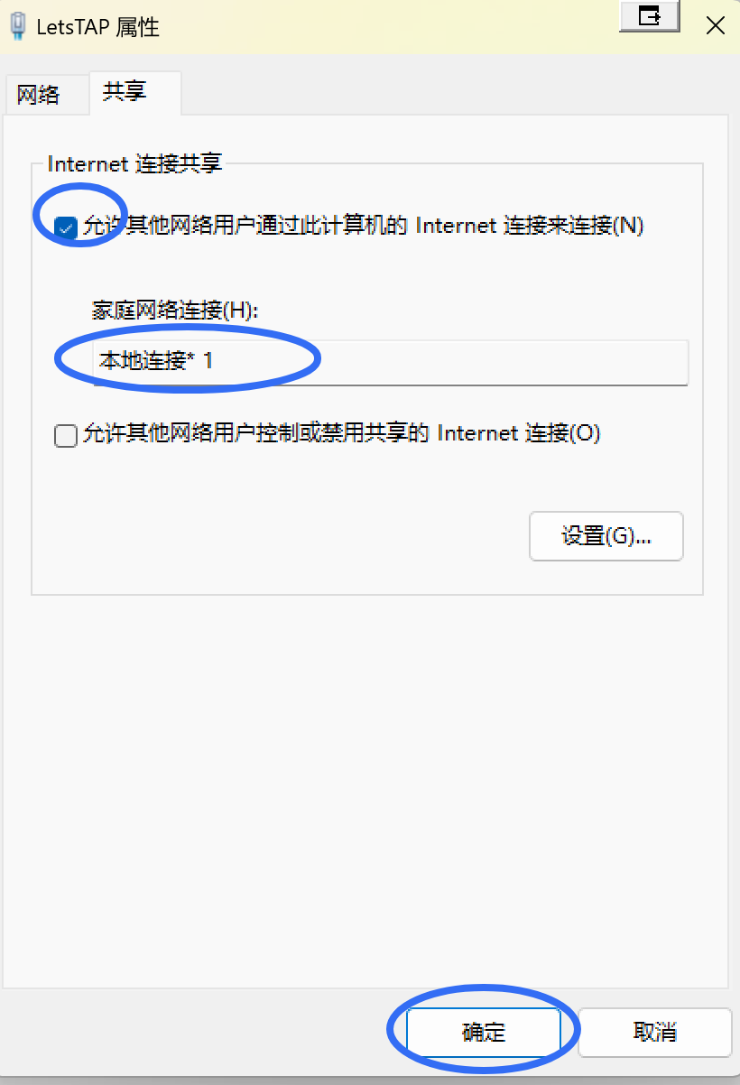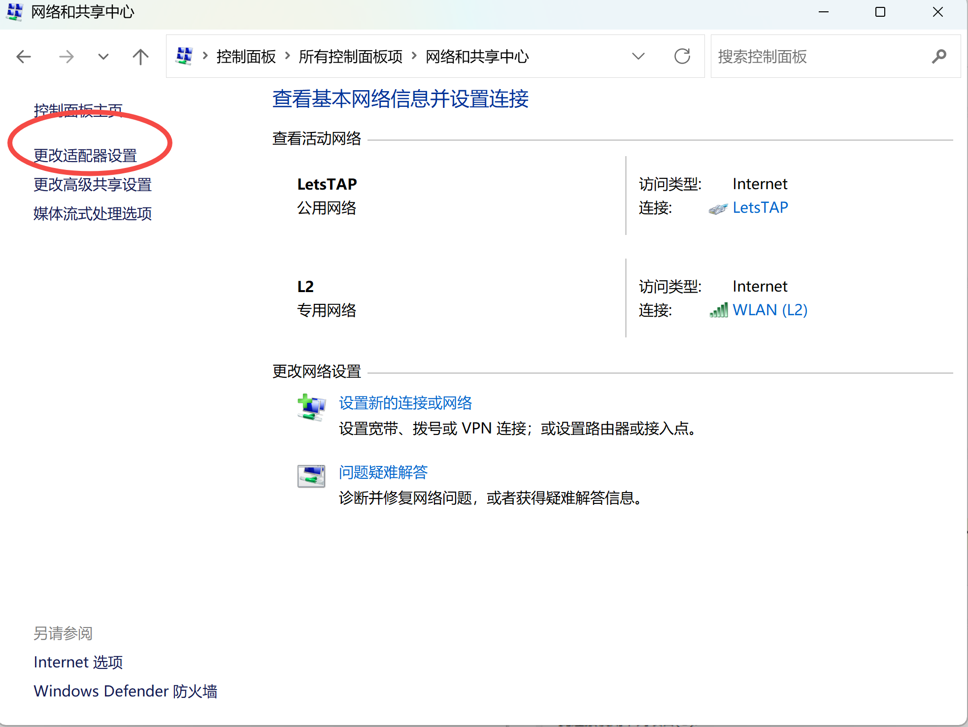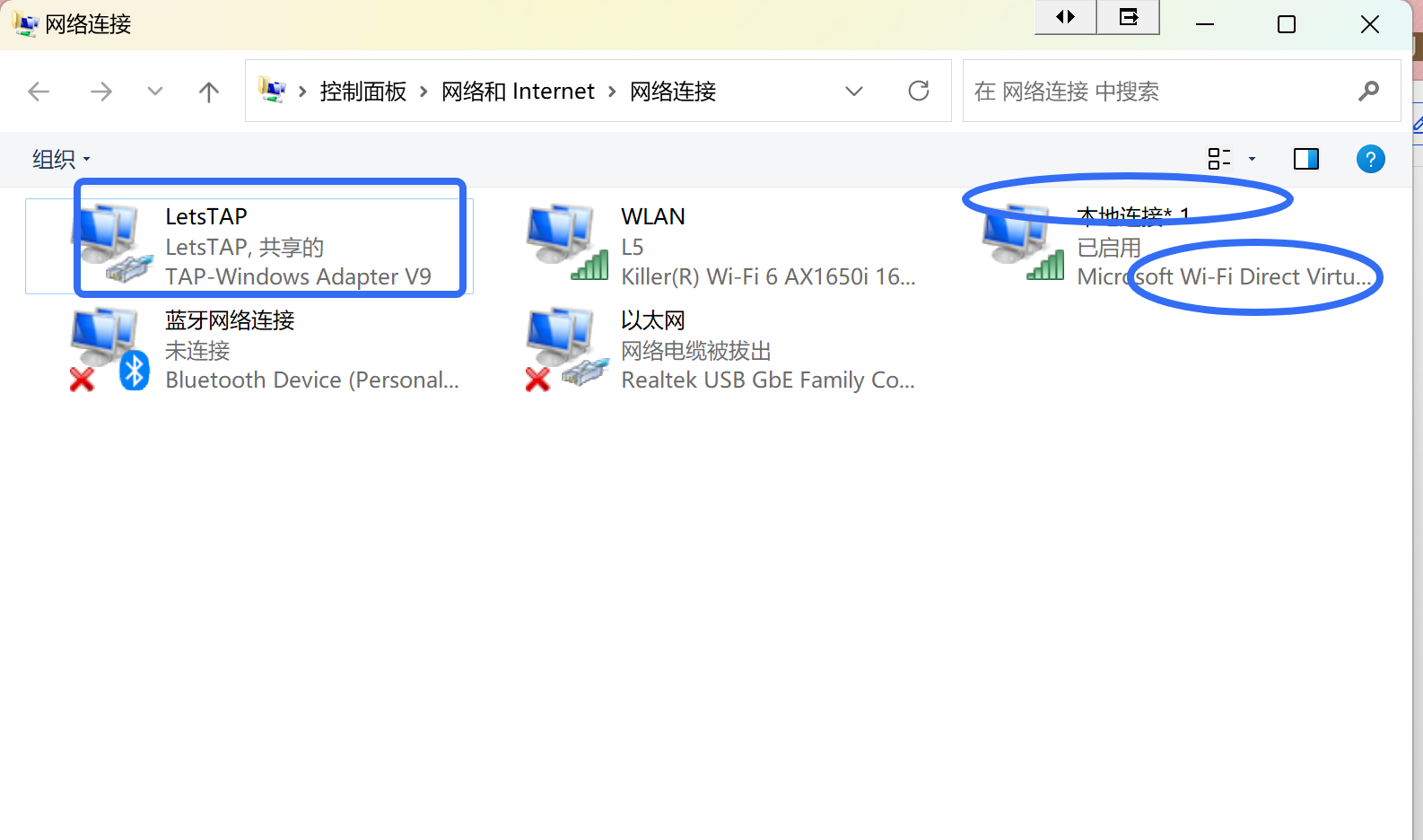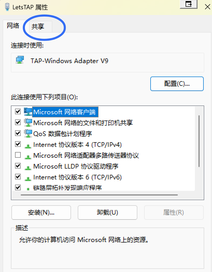 然后找到VPN对应的名字,例如下方的LetsTAP,右键选择 VPN对应的LetsTAP,选择 共享