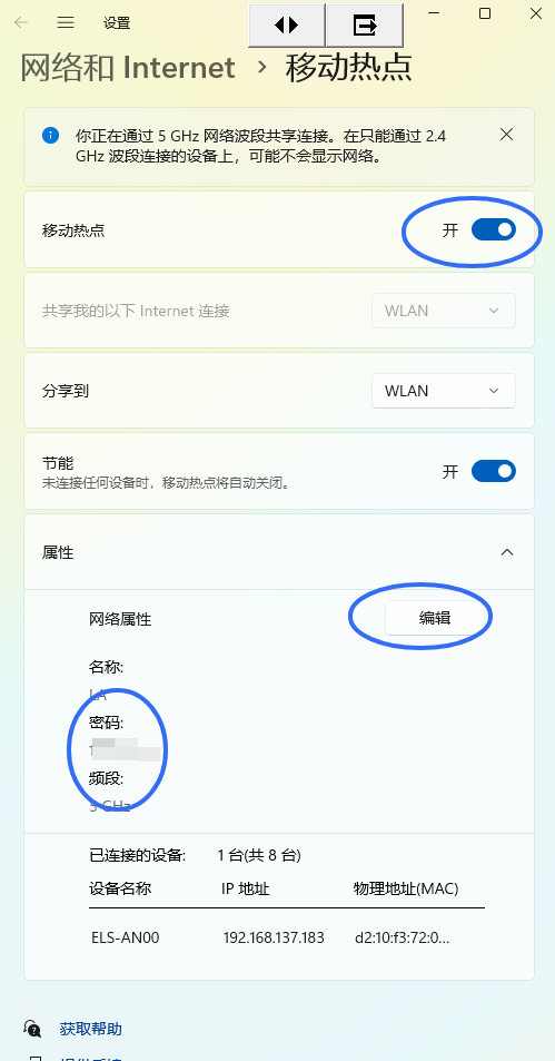 3、选择允许其他网络用户连接,并且选择刚才打开的热点对应的名字(如此处为 本地连接1)